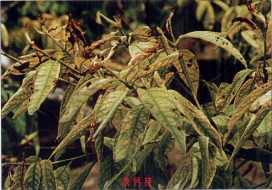 (2)桃树缺钙症状 桃树对缺钙很敏感,主要表现在幼根的根尖生长停滞,而皮层仍继续加厚,在近根尖处生出许多新根。严重缺钙时,幼根逐渐死亡,在死根附近又长出许多新根,形成粗短多分枝的根群。