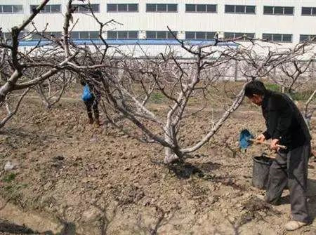 施肥时不要靠树体太近,要适当与土壤混合,以免烧根。土壤含水量较多、土壤质地较黏重、树龄较大、树势较弱的桃树,在施用有机肥较少的情况下,施肥量可取高量;反之,则应减少用量,并适量混入过磷酸钙、硫酸钾复合肥等无机肥,沟施以20~40厘米深较为适宜。施肥量为全年施入量的60%~80%(折合三要素含量计算)。春施应在土壤化冻后立即施入,萌芽前3周施完。春施基肥应充分腐熟。通常采用环状或放射状沟施。