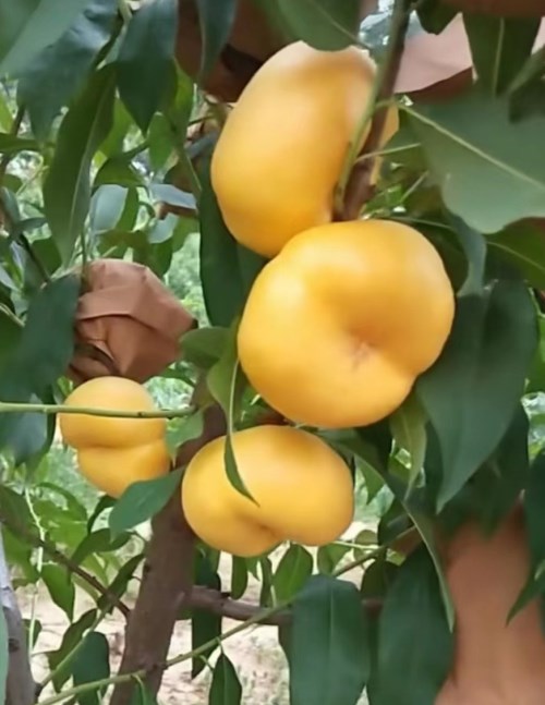 中油蟠5号,6月下旬成熟,平均单果重180克,大果250克。黄肉,风味浓甜,平均可溶性固形物13%、 含糖15%以上。粘核、丰产。该品种主要特点为早熟、大果、肉硬、肉厚、味甜,适合观光采摘园。