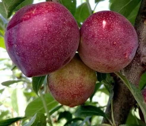 澳洲红2号:成熟期6月底,平均单果重80克,果个均匀。果皮着鲜艳玫瑰红色。着色面积达100%。果肉红色,半离核,硬肉型,肉质细脆,含可溶性固形物14.5%。口感脆、甜、爽、香、酸味很少,该品种鲜果耐贮运性良好,7月高温天气可自然贮藏10-15天。
