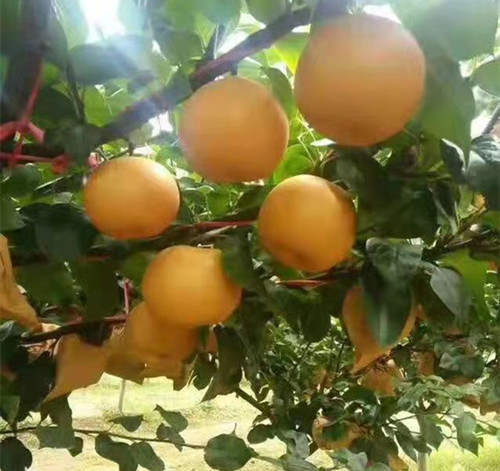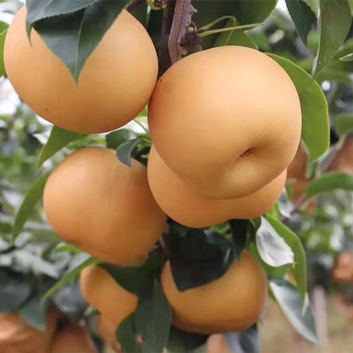 果实扁圆形,果形端正,平均单果重400克,******628克,套袋后金黄色,外观极其漂亮;果肉乳白色,肉质细脆,汁多味甜,清香爽口,石细胞极少,可溶性固形物含量15%-16%,果心极小,可食率达95%以上,品质极佳;树势健壮,果肉含丰富的抗氧化物质,抗癌,抗衰老,是一个综合性状优良的晚熟梨优新品种。
